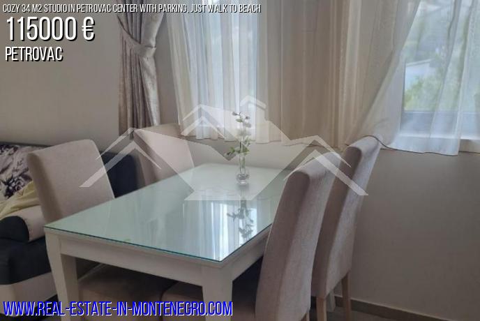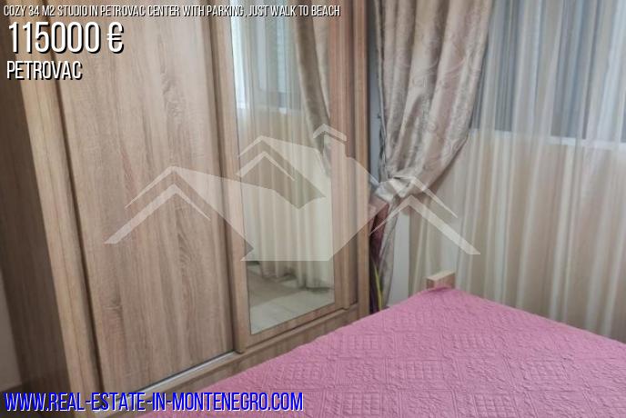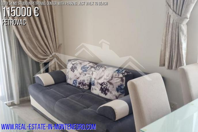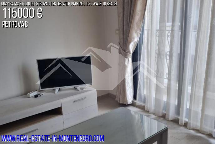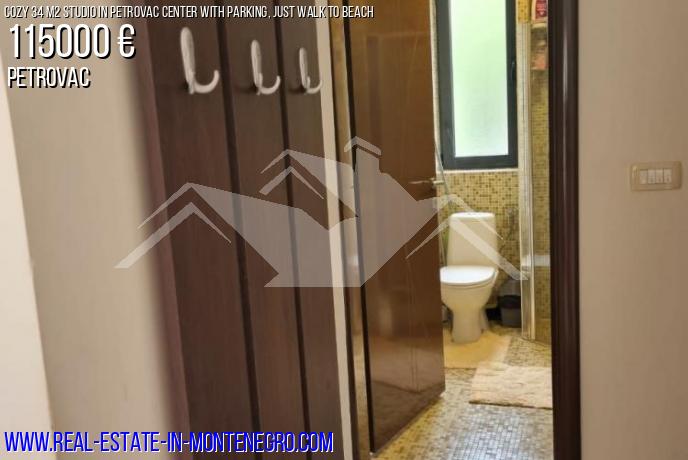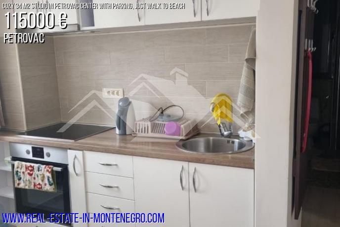 Petrovac, apartment for sale 34 m2, 2 / 4th floor of a one-bedroom house, located in the very center. Good location - no uphills, the entire infrastructure (beach, shops, cafes, pharmacies) is within walking distance of the beach, only 250 m. The apartment is suitable for both personal living and renting.