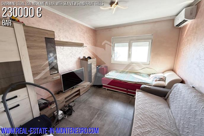 2nd floor: living room with kitchen, 2 bedrooms, bathroom, hallway, large terrace overlooking the sea and the city Bar. On the same floor there is another room with a separate exit, which can be used as an additional bedroom.