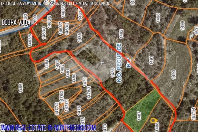 For sale a plot of 9300 m2 above Dobra Voda with an unobstructed sea view for the construction of a village or settlement.